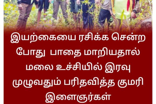 இளைஞர்களை தீயணைப்பு வீரர்கள் பத்திரமாக மீட்டனர். குமரி மாவட்டம் குளச்சல் அருகே உள்ள கண்ணனூர் விளாகத்தை சேர்ந்தவர் ஜெபவிஜி (வயது 25). இவருடைய நண் பர்கள் வலியவிளையை சேர்ந்த பிரவீன் (23), வர்த்தான்விளையை சேர்ந்த ஜான் கிப்சன் (23), சரல்விளையை சேர்ந்த ஜேக்சன் (23). இவர்கள் + பேரும் நேற்று முன்தினம் இயற்கையின் அழகை ரசிப்பதற்காக தக்கலை அருகே உள்ள மருந்துக்கோட்டை பகுதிக்கு மோட்டார் சைக்கிளில் சென்றனர். அங்கிருந்து அருகில் உள்ள வேளிமலையின் தொடர்ச்சியான மந்தேரி மலைக்கு…